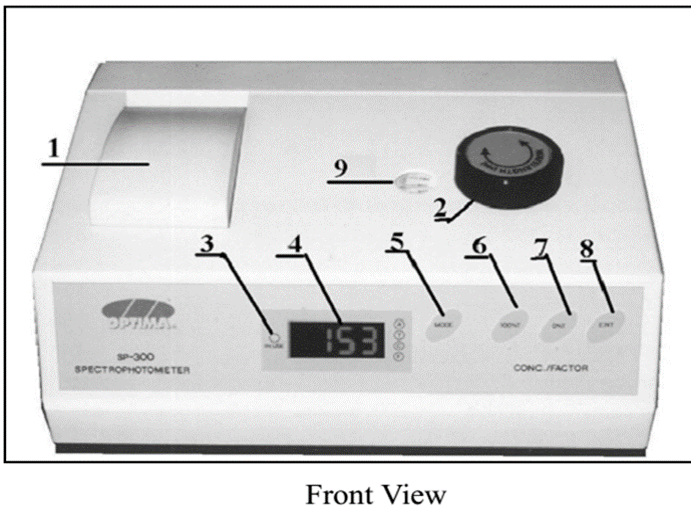 Vị trí đặt máy quang phổ sp-300 optima Các phím chức năng của máy quang phổ optima sp-300 Thao tác vân hành máy quang phổ sp-300 optima