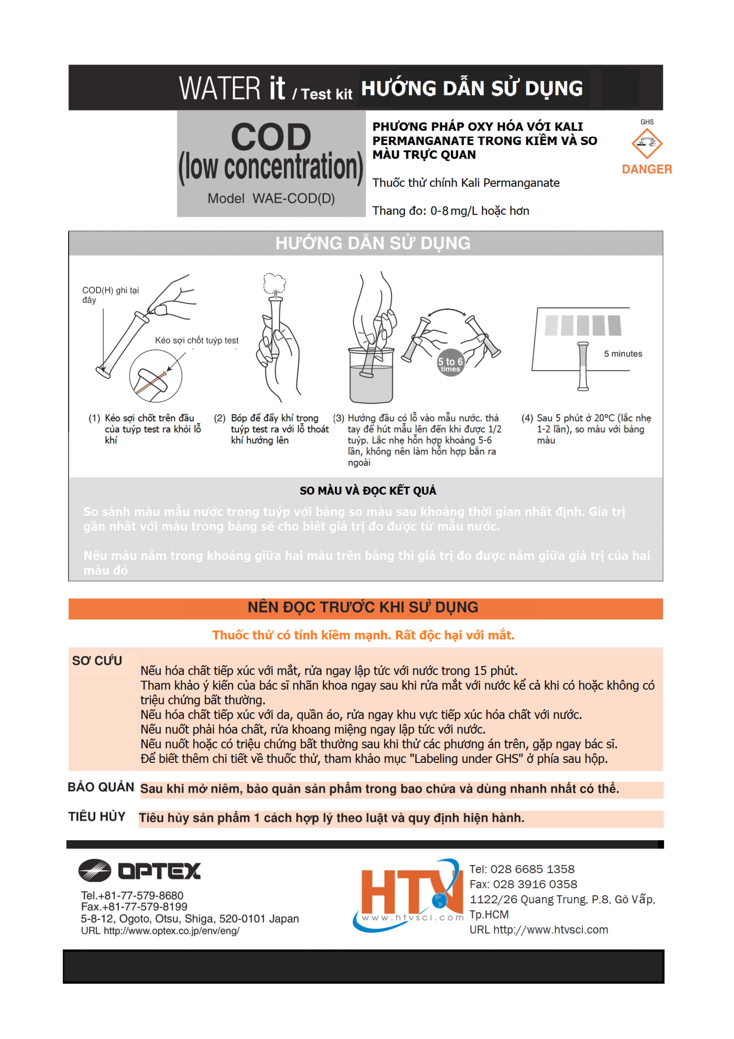 HƯỚNG DẪN SỬ DỤNG TEST NHANH COD THANG THẤP WAE-COD(D) CỦA HÃNG WATER-IT