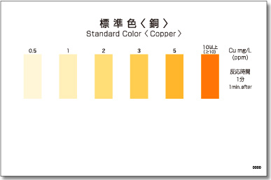 Thang đo của Test nhanh hàm lượng đồng: 0,5, 1, 2, 3, 5, ≥10 mg/L