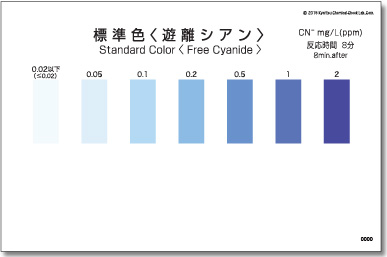 Thang đo của Test nhanh hàm lượng Cyanide tự do: ≤0.02, 0.05, 0.1, 0.2, 0.5, 1, 2 mg/L