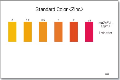 Thang đo của Test nhanh hàm lượng kẽm: 0, 0.2, 0.5, 1, 2, ≥5 mg/L