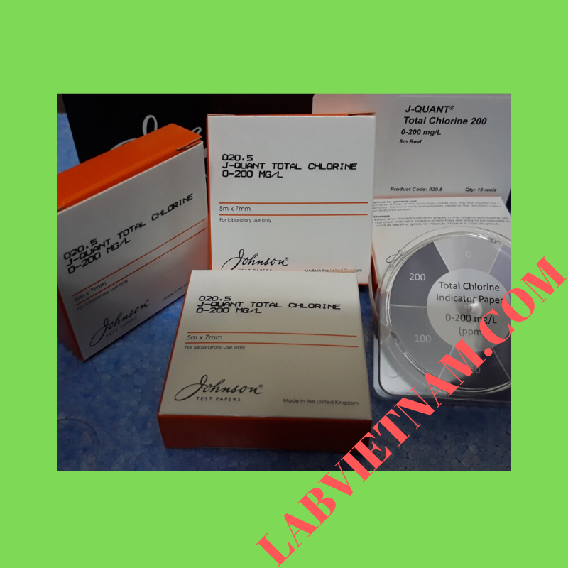 Test thử nhanh Chlorine (clo) 020.5 là test thử nhanh chlorine tổng (chlorine tự do và chlorine liên kết) trong dung dịch khử trùng với khoảng đo 0-200 ppm. Test thử nhanh chlorine được sử dụng nhiều để kiểm tra chlorine trong vệ sinh công nghiệp, chlorine hồ bơi, chlorine trong spa, chlorine trong nước uống và trong sát khuẩn thực phẩm.