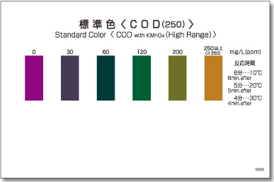 Thang đo của Test nhanh hàm lượng COD: 0, 30, 60, 120, 200, ≥250 mg/L
